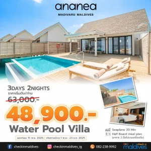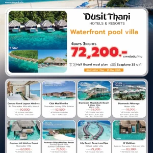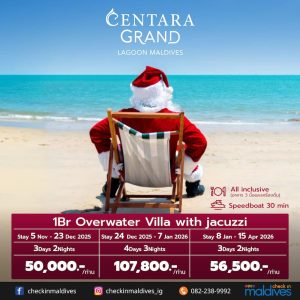 ร่วมค้นพบประสบการณ์สุดพิเศษกับโปรโมชั่นแพ็คเกจมัลดีฟส์จาก CheckinMaldives ที่คัดสรรดีลสุดคุ้มจากรีสอร์ทระดับพรีเมียมมาให้คุณ พร้อมสิทธิประโยชน์มากมาย ทั้งส่วนลดที่พัก อัพเกรดห้อง มื้ออาหารพิเศษ และกิจกรรมท่องเที่ยวฟรี