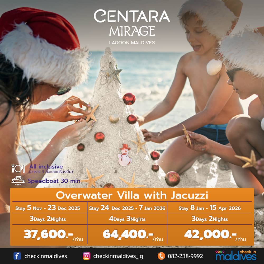 🎄 ปีใหม่นี้พาครอบครัวไปมัลดีฟส์ @ Centara Mirage Lagoon Maldives| วิลล่ากลางน้ำ + กิจกรรมคริสต์มาสสุดอบอุ่น พัก Overwater Villa with Jacuzzi พร้อม All Inclusive & กิจกรรมคริสต์มาสสำหรับครอบครัวสุดอบอุ่น